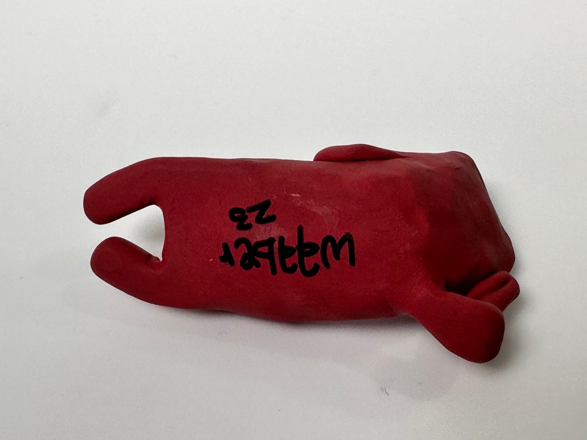 Hand sculpted and signed by Waaber in baked clay .
