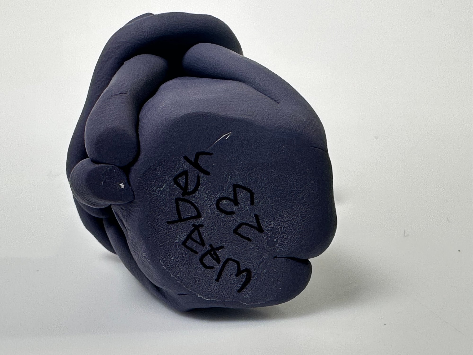 Hand sculpted and signed by Waaber in baked clay .